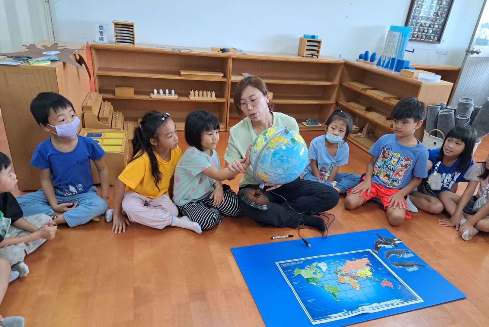 沈婷梅老師在課堂上運用了情境教學法與合作學習,讓孩子在互動中學習英文。例如,她設計了一系列紙本互動教材,鼓勵孩子透過分組合作來完成學習任務。此外,她也運用創造思考教學法,讓孩子在自由討論與問題解決中學習語言。這種教學方式使得課堂更加活潑,也激發了學生的思考能力。