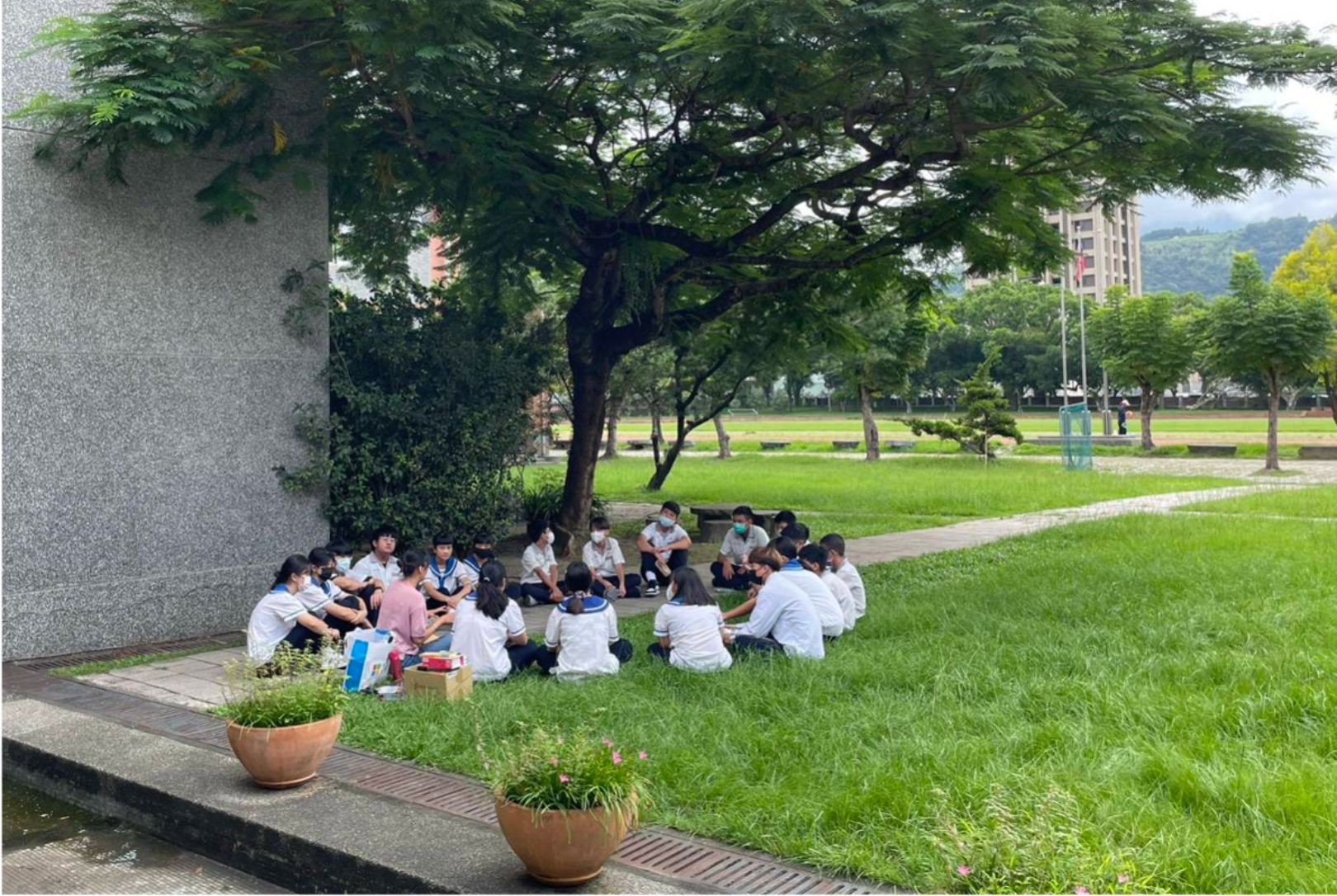 ▲將藝術、輔導與教學串聯,她讓學生在草地上也能學習。(提供/洪子涵)